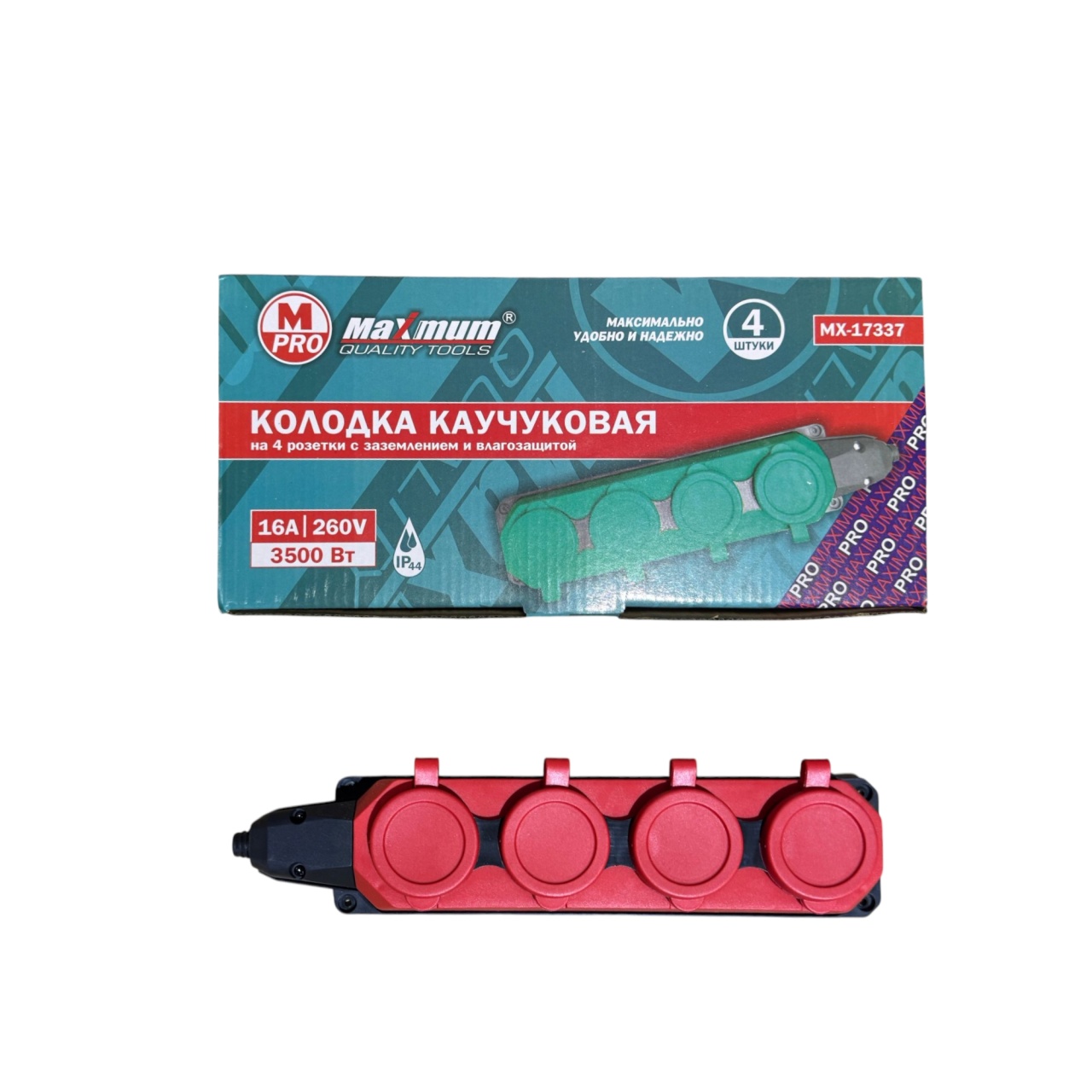 Каучуковая переноска на 4 розетки MAXIMUM MX 17337 создана для использования в сложных условиях. Благодаря высокой степени защиты IP44 она надежно оберегает внутренние механизмы от пыли и брызг воды, что делает ее незаменимым помощником в гараже, мастерской, на стройплощадке, даче или даже в саду.