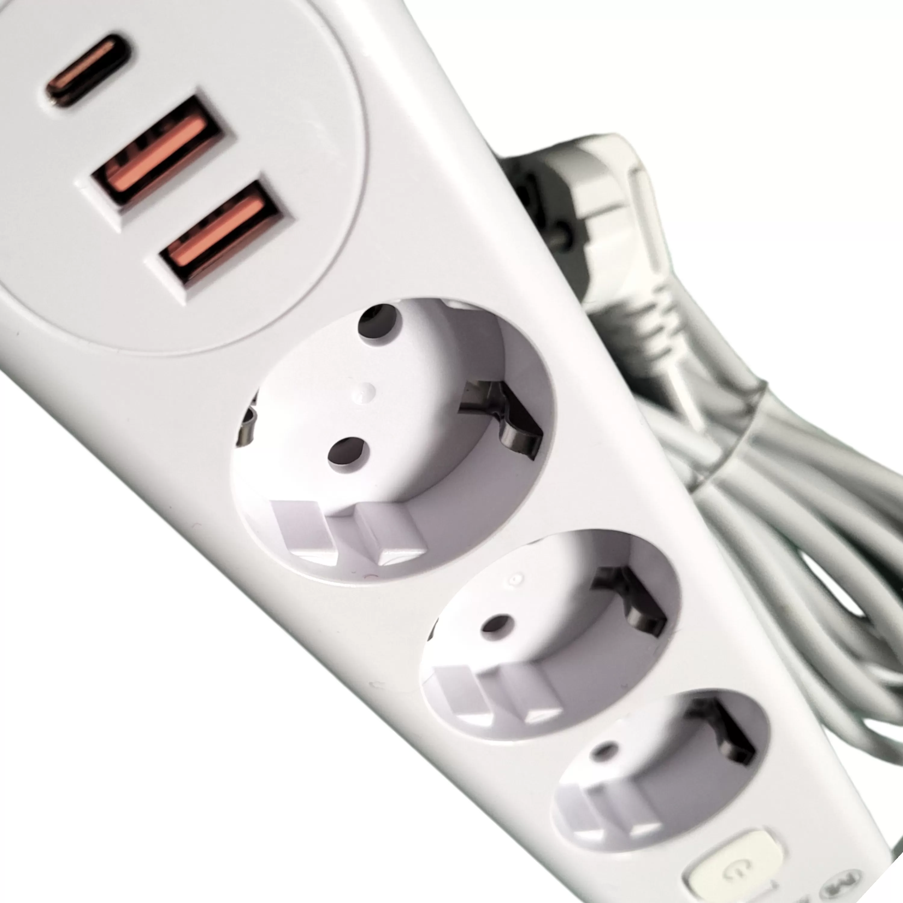 Наличие двух USB-портов позволяет заряжать большинство мобильных устройств: телефонов, планшетов, фотоаппаратов, плееров, IPhone, Ipad и т.д. Также предусмотрен вход для кабеля Type C. Сетевой тройник с переключателем имеет номинальное напряжение 220 В, номинальный ток 16 А, степень защиты от пыли и воды IP 20.