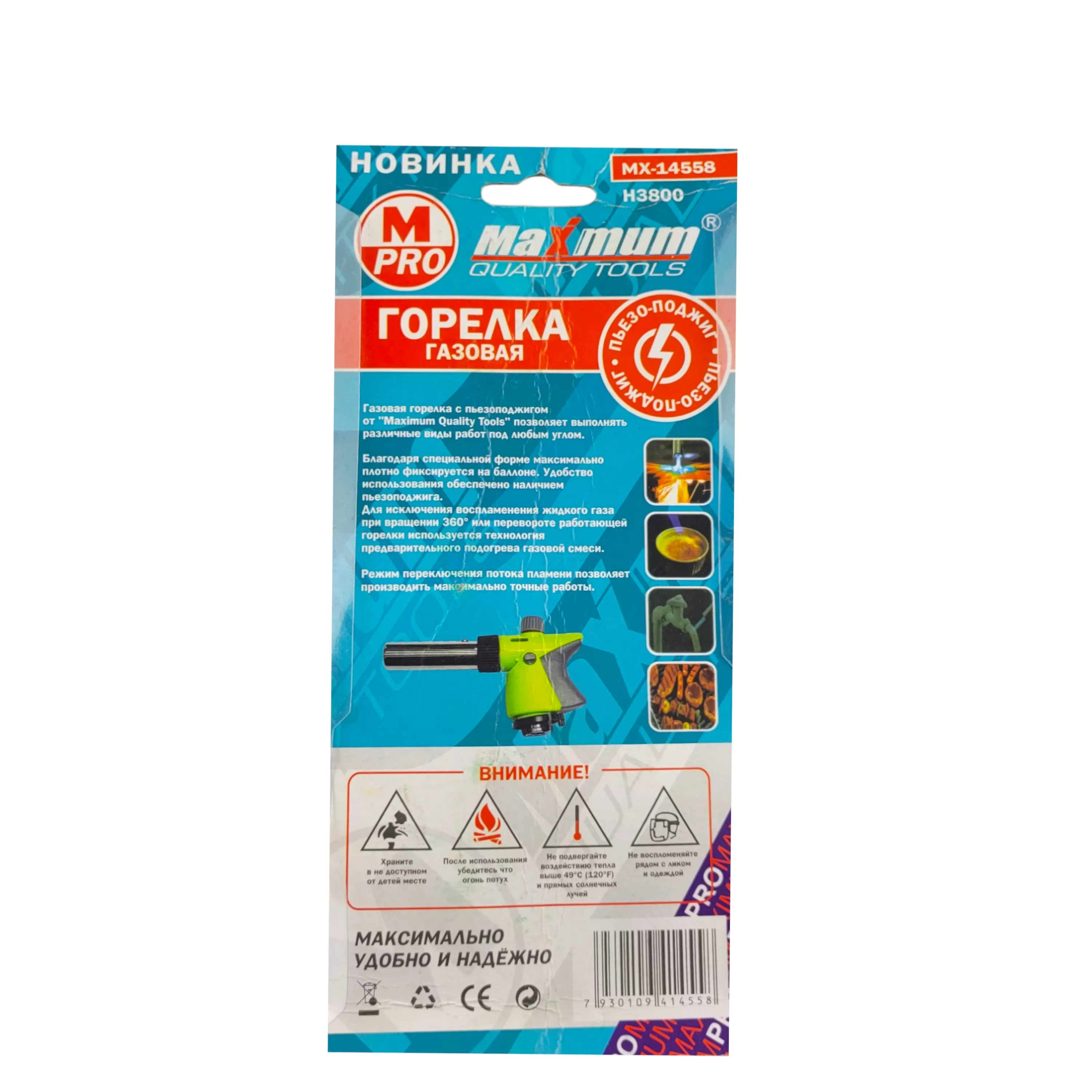 Горелка газовая 914, с пьезоподжигом, "MAXIMUM" MX 14558