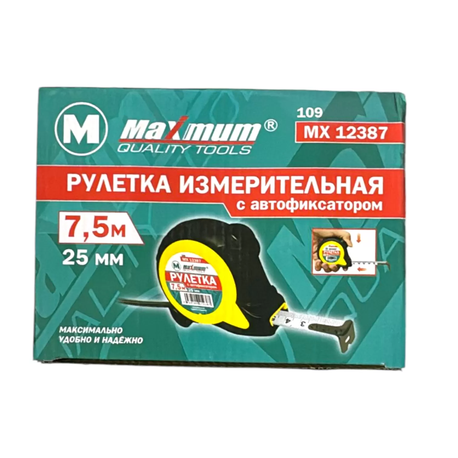Рулетка измерительная с автофиксатором ленты 7,5 м*25 мм, ТИП 109, "MAXIMUM" MX 12387 (2464) (2464)