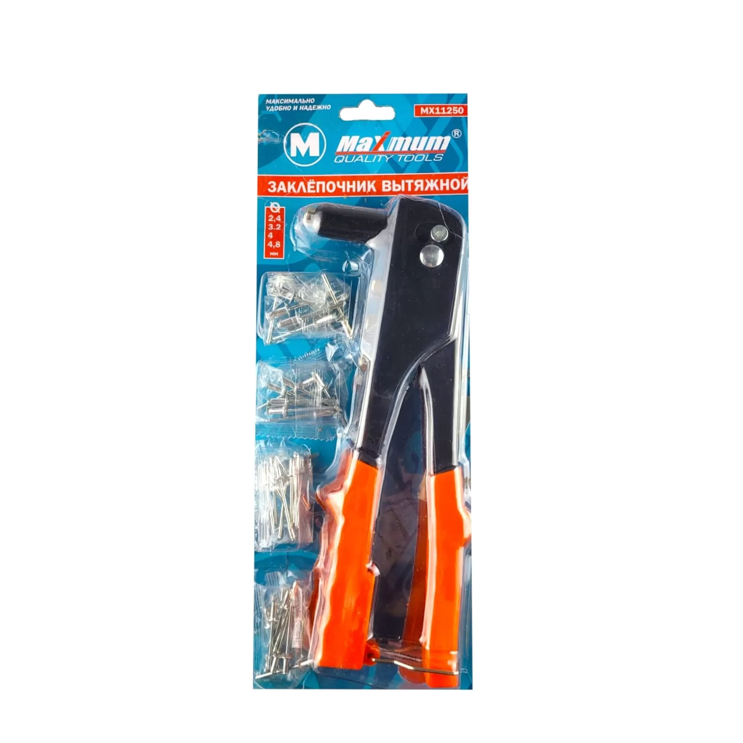Заклепочник вытяжной 240 мм, 2.4, 3.2,4, 4.8 мм в комплекте, "MAXIMUM"MX 11250