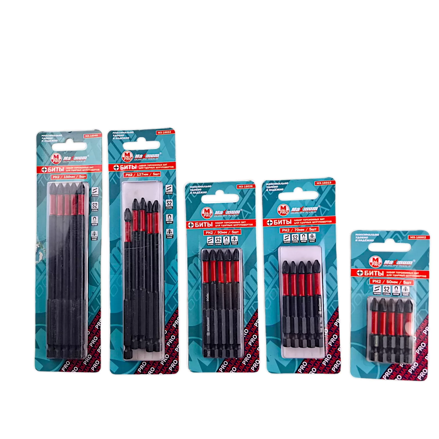 Набор бит торсионных для ударных шуруповертов PH2, 50 мм, S2, 5шт., "MAXIMUM" MX 16002