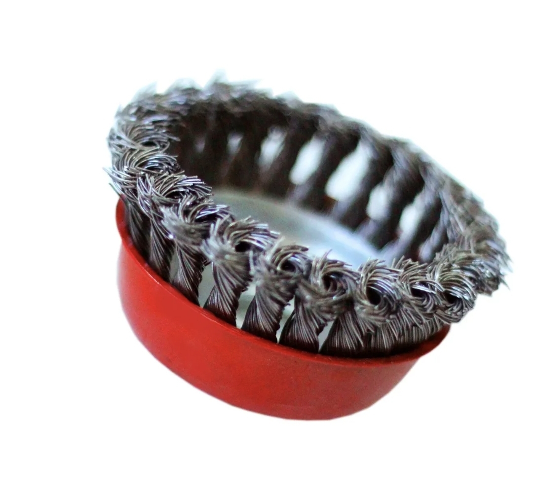 Чашечная щетка является сменным элементом для угловых шлифовальных машин. Применяется для шлифовки, полирования, зачистки от лака, краски и коррозии различных поверхностей и изделий. Рабочая часть состоит из скрученной в пучки стальной, закаленной проволоки.