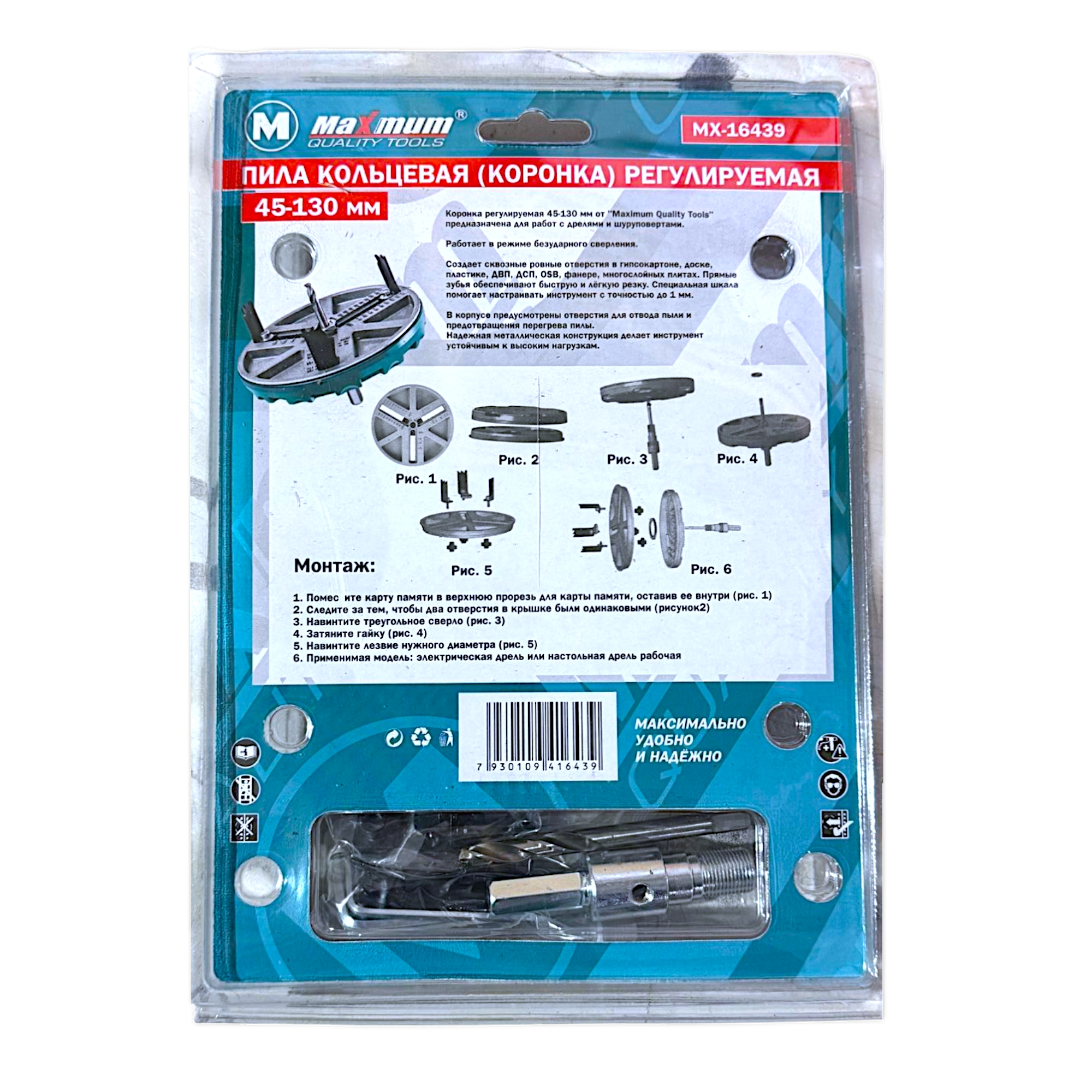 Кольцевая пила от "Maximum Quality Tools" — это универсальное решение для идеально ровных и точных отверстий. Инструмент легко справляется с деревом, гипсокартоном, штукатуркой и пластиком. Вам больше не нужно покупать несколько пил на разные диаметры: один компактный набор с сменными коронками (от 45 мм до 130 мм) заменяет целый арсенал, экономя и деньги, и место в мастерской.